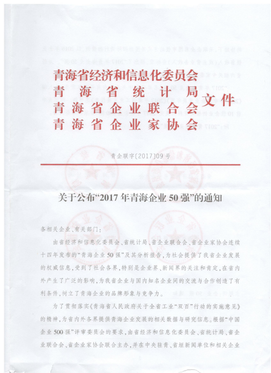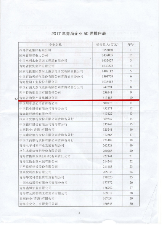 青海物產(chǎn)集團總公司再次入圍青海企業(yè)50強