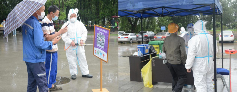清晨,在綿綿細(xì)雨中園區(qū)新一輪區(qū)域核酸檢測有序推進(jìn),核酸檢測點(diǎn)搭起遮雨帳篷,公司廣大黨員干部奮勇?lián)?dāng)沖鋒在前,維護(hù)秩序、進(jìn)行掃碼,醫(yī)護(hù)人員快速有效地采集核酸。大家上下同心、通力配合,有序高效的進(jìn)行核酸檢測,僅用了三個多小時就全面完成了園區(qū)人員核酸采樣工作。據(jù)統(tǒng)計(jì),本次核酸檢測共有1103名干部職工及外租單位人員參加,檢測結(jié)果全部為陰性。