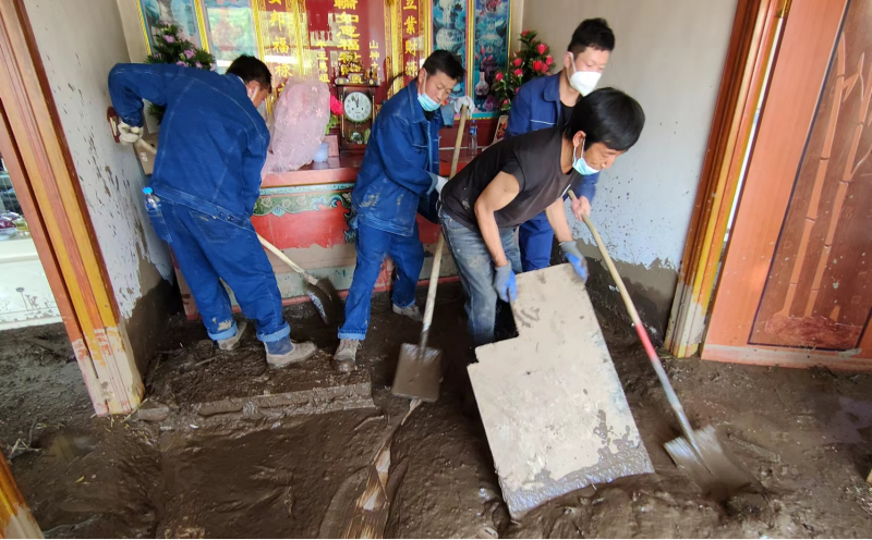在救災(zāi)現(xiàn)場(chǎng),公司抗洪救災(zāi)突擊隊(duì)和先鋒隊(duì)員,充分發(fā)揚(yáng)“不怕苦、不怕累,敢奉獻(xiàn)、勇?lián)?dāng)”的精神,按照“8.18”山洪災(zāi)害搶險(xiǎn)救援處置工作應(yīng)急指揮部的統(tǒng)一安排,迅速投入到清除淤泥和道路清障等工作。大家不間歇地用鐵鍬清、用架子車(chē)?yán)?,兩天共清理十家住?hù)和三戶(hù)商鋪的屋內(nèi)外淤泥,裝運(yùn)泥漿20余噸。