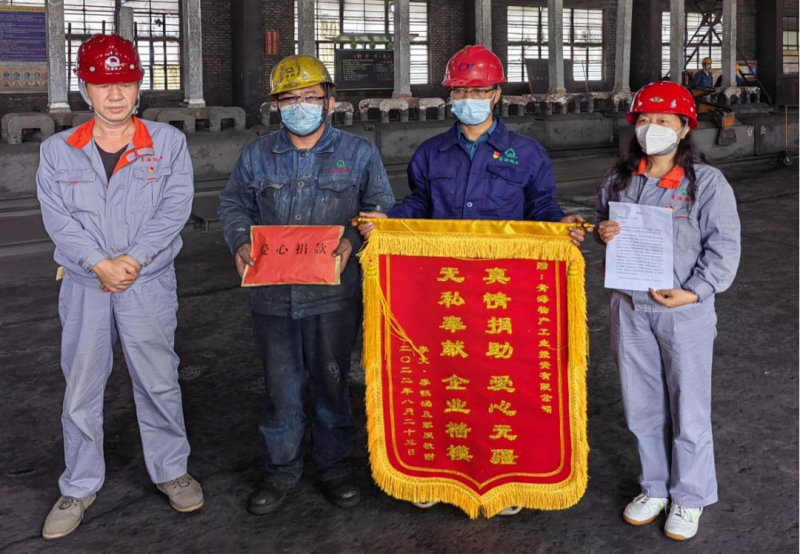 (物產(chǎn)工投公司 訊 任蕊/文攝)“謝謝公司領(lǐng)導(dǎo)和同志們的關(guān)心,謝謝、謝謝……”當(dāng)物產(chǎn)工投公司陽極組裝車間職工李文雙手接過這包充滿了關(guān)心和溫暖的愛心捐款時(shí),強(qiáng)忍的淚水早已決堤,疲憊的臉上多了一絲幸福和希望。