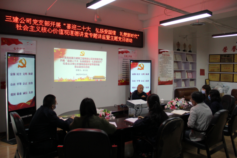 (省三建公司 訊 韓毓、王文杰/文 韓毓/攝 )2022年是黨的二十大召開之年,是落實省第十四次黨代會精神開局之年。為持續(xù)鞏固拓展黨史學習教育成果,加強精神文明建設,深化民族團結進步宣傳教育和感恩教育,講好各族民族守望相助、團結奮進的國企故事,積極培育和踐行社會主義核心價值觀,9月21日,公司黨支部開展“喜迎二十大 弘揚愛國情 禮贊新時代”社會主義核心價值觀道德講堂專題講座暨主題黨日活動。
