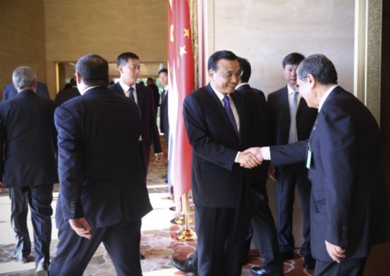 李克強總理會見烏茲別克斯坦總統(tǒng)卡里莫夫時說:"中烏可以在雙方感興趣的領域廣泛開展產(chǎn)能和裝備制造業(yè)合作。"