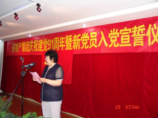 我宣誓:"我志愿加入中國共產(chǎn)黨,擁護黨的綱領(lǐng),遵守黨的章程,履行黨員義務(wù),執(zhí)行黨的決定,嚴守黨的紀律,保守黨的秘密,對黨忠誠,積極工作,為共產(chǎn)主義奮斗終身,隨時準(zhǔn)備為黨和人民犧牲一切,永不叛黨"。6月29日上午10∶00時,17名新加入黨組織的中國共產(chǎn)黨預(yù)備黨員、所屬各黨組織書記、老黨員代表等30余人的莊嚴宣誓,標(biāo)志著青海物產(chǎn)系統(tǒng)慶祝建黨91周年系列活動正式展開。